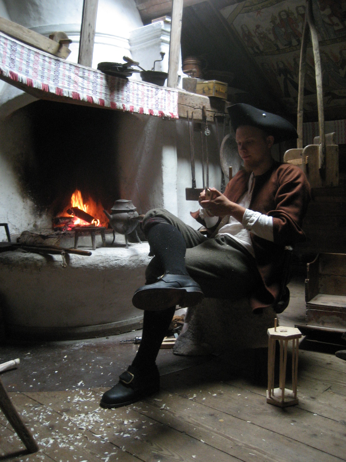 Tuff dag på jobbet. Regnet öser ner stundtals, några få tappra besökare under dagen. Jag satte mig framför brasan för att slutföra några träprojekt. Ryggåsstugan i Stadsparken är verkligen värt ett besök.