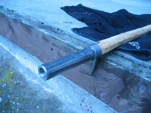 Idag provsköt jag pipan två gånger med vanlig och stor krutladdning. Jag monterade geväret och höll inte i det själv eftersom det är ett säkerhetsprov. Stubin istället för fängkrut. Den ger ifrån sig en mättad, dov smäll inte som mina lilla 14mm:s bössa som är snärtigare och ljusare i ljudet. Haken på geväret verkar sitta fast bra och håller fint.