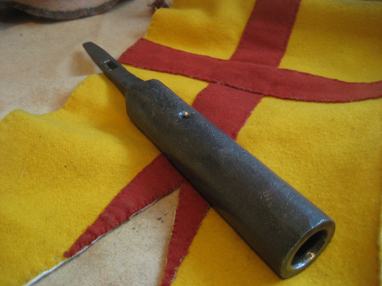 Just dessa rör är bergsborrsförlängningsaxlar som är väldigt hårda. Tången är vanligt järn. Egentligen räcker det med vanligt järn i rör också så länge man skjuter löst vilket är det enda lagliga. Pipor härdade man i vilket fall inte förr. Dessa stålrör är det viktigt att man ser till att de är ordentligt avhärdade så att de inte är sköra på något sätt. Rören har jag handlat på en vanlig skrot.