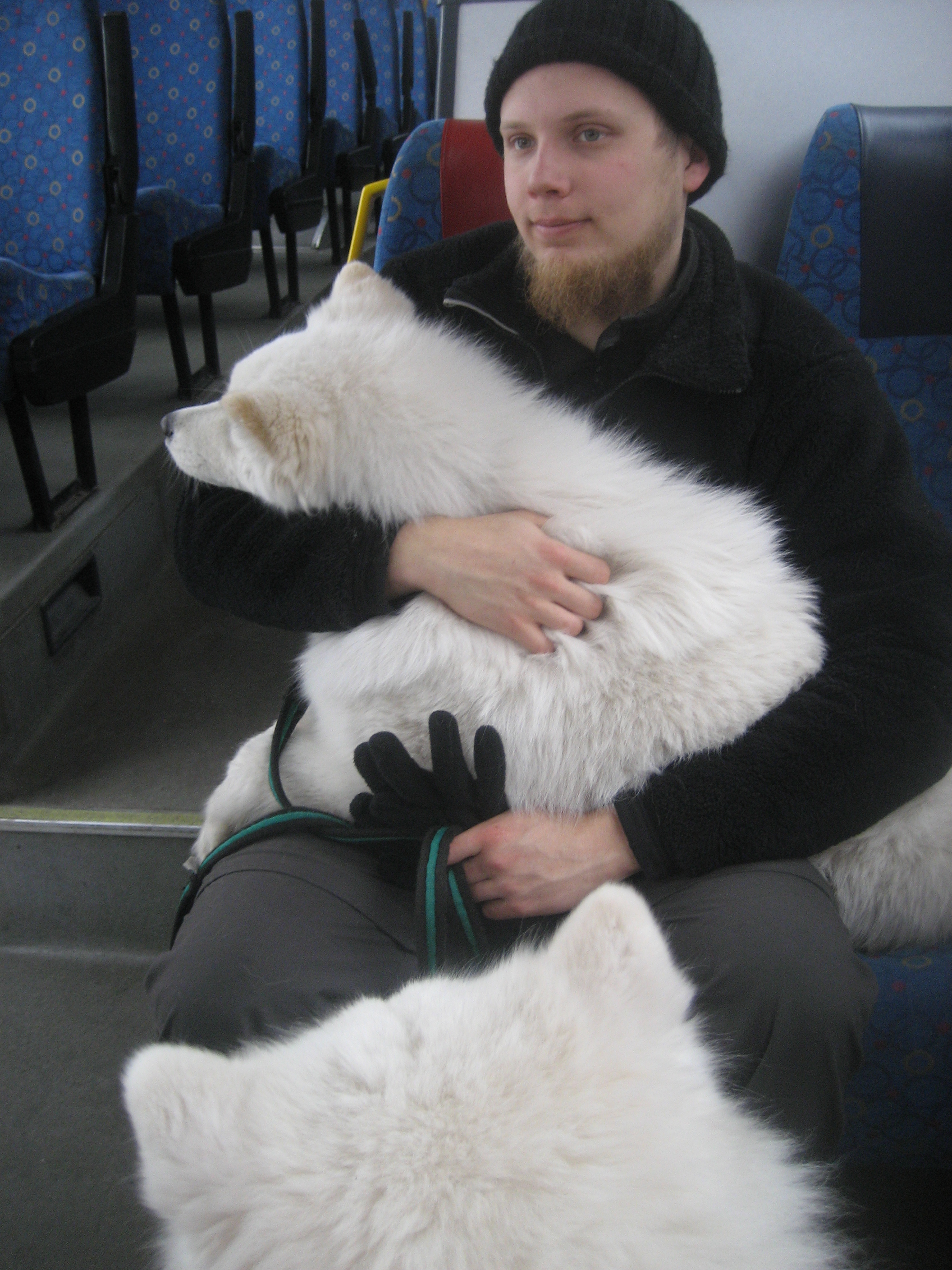 Annars så väntar vi på att bilen ska lagas efter sviterna från ett bilinbrott. Istället får man åka buss med hundarna, det blir extra intressant då den ena aldrig åkt buss i förut. Benhård Nina blir plötsligt lite sjåpig men det kan ju vara mysigt ibland. Kurage försökte undervisa henne i bussåkarkonsten men ibland funkar bara husse.