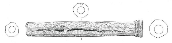 Skissen är baserad på en tysk bössa med järnskaft och hake och massa förstärkningar. Det gick bra ett tag och jag vällde fast haken. Sen när jag skulle välla fast nästa beslag misslyckades vällningen och mer o mer material försvann. Jag skrotade då denna modell och tänkte göra en dansk modell med 8-kantig profil med hake. Men när jag började smida kanterna ramlade haken bort o ja då funderade jag till igen. Då drog jag mig till minnes om den här bössan som var åttakantig med en förhöjd mynning. På den vägen är det. Det blev mycket intressanta nya kunskaper, att smida ett rör 8-kantigt är rätt knepigt men det går. Den förhöjda åsen var ännu krångligare då det är ett rör och inte ett solid rundstav. Så trots utgångsläget blev det rätt bra. Jag kommer definitivt smida mer 8-kantiga pipor.