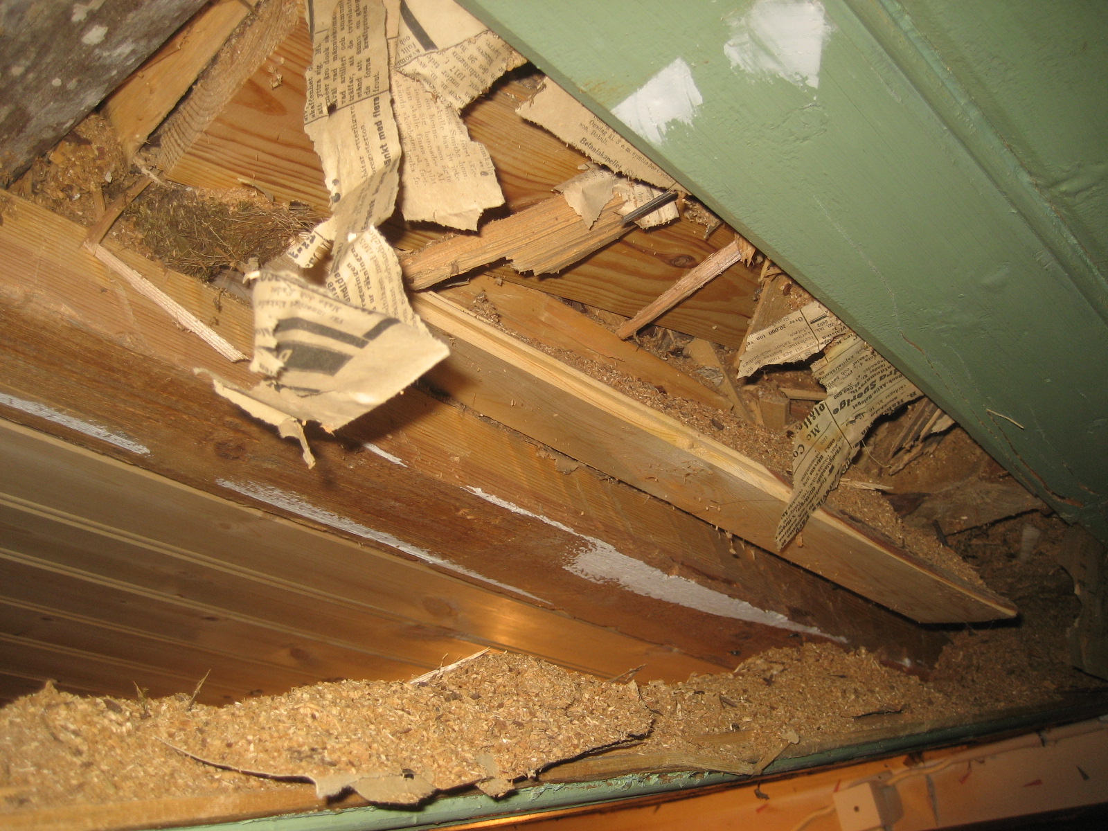 Dessa bräder måste bytas eftersom de är sprukna och släpper igenom…vad? Just det sågspån ifrån bjälklaget. De som är finurliga kan redan nu räkna ut hur värdet av den städningen bara rasade. Bokstavligen.