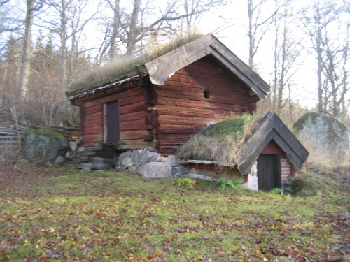 I en hembygdsgård norr om Åtvidaberg fanns bland annat en källarbod som tros vara från 1400-talet. Stolt påpekade infoskylten att det kunde vara Östergötlands äldsta profana byggnad. Så lär det ju inte vara, Birger Jarlspalatset i Vadstena är äldre men blir förvisso del av nunnekonventet, å andra sidan finns ju Mårten Skinnares hus i Vadstena från 1400-tal. Äldsta timmerhuset? Dateringen är bara gjord efter knutskallarnas 6-kantiga form. Kul hus i vilket fall.