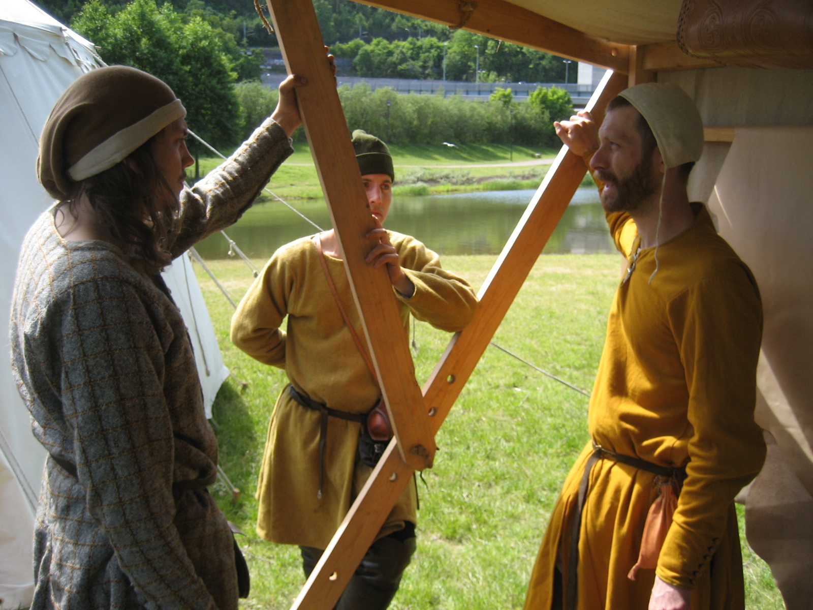 Oslo Middelalderfestival var en skojjig och lite corny tillställning mitt i Oslo med motorvägar, husbyggen och annat som fond. Extra roligt var att även Kongshirden var där med läger och vi kunde umgås med dom, prata skor, spela gluckenhaus och hugga i deras gris. Det finns mycket att säga men det får bilderna säga. För dig som degenererats som varelse finns även mer foton på ansiktsboken.