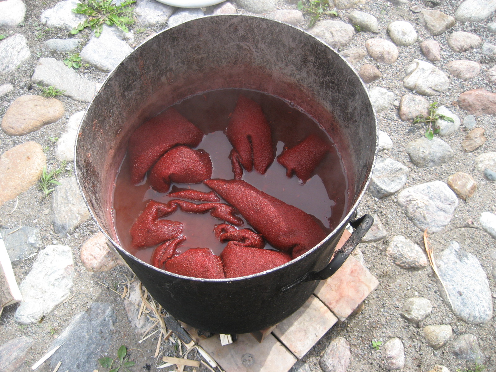 Växtfärgning på museets gård/Grå huset. Ta gärna med eget ullgarn, vi färgar blått, grönt, rött.