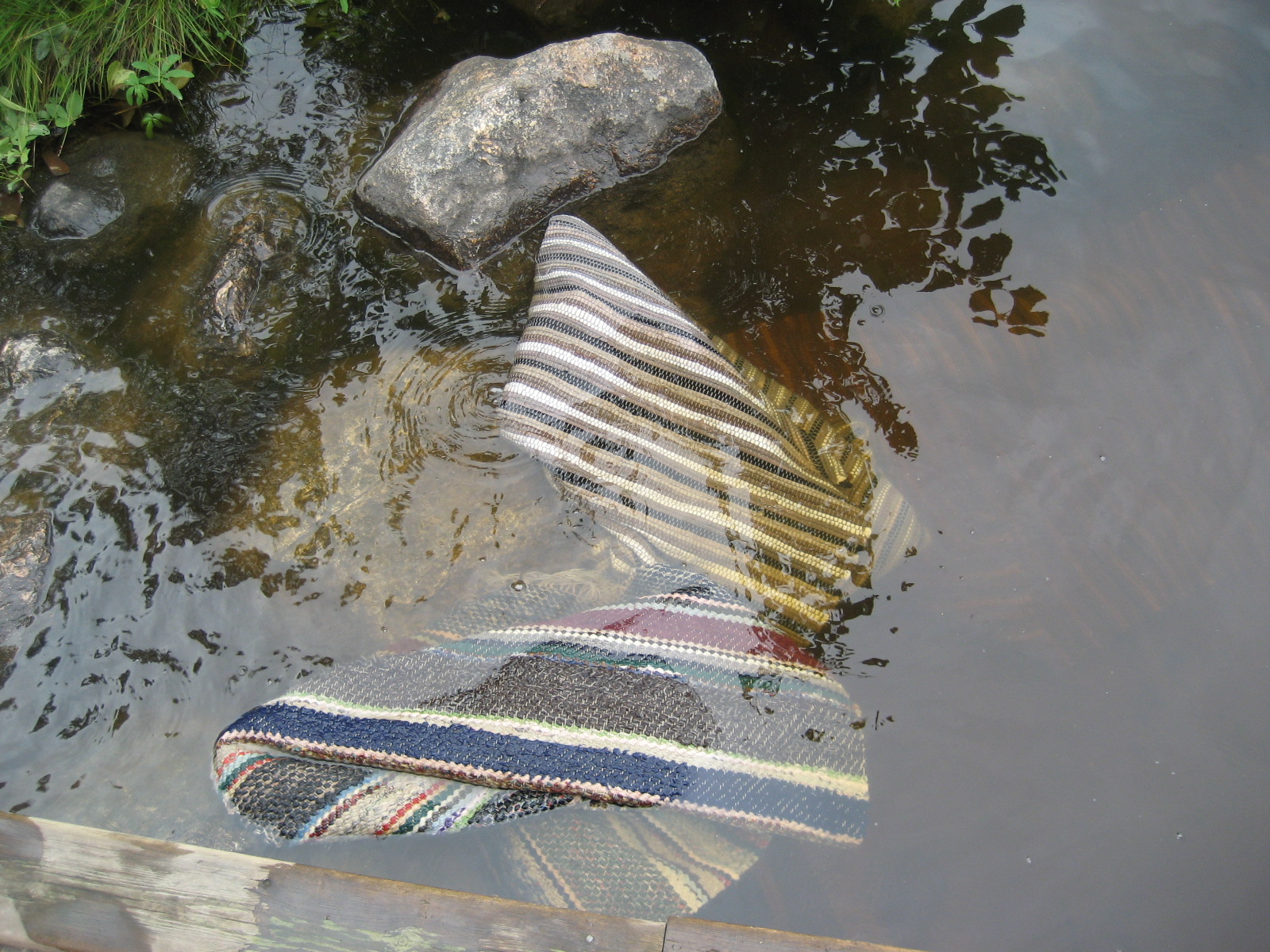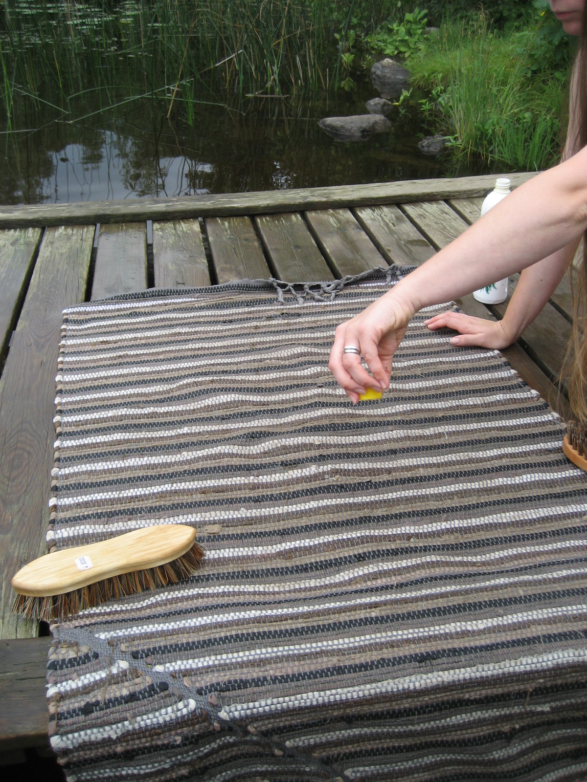 Detta är en gästartikel skrivet av min hustru, Anna-Maria. Hon vill delge sina metoder i hur hon skurar mattor på traditionellt vis. Vi använder mycket trasmattor hemma då vi har trägolv och en pågående renovering samt hundar. Denna skurning inträffade för ett par veckor sen på Getsjöns brygga i svärtingeskogarna.
