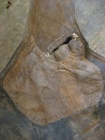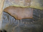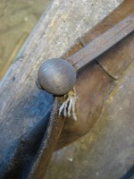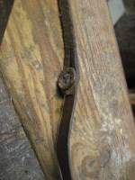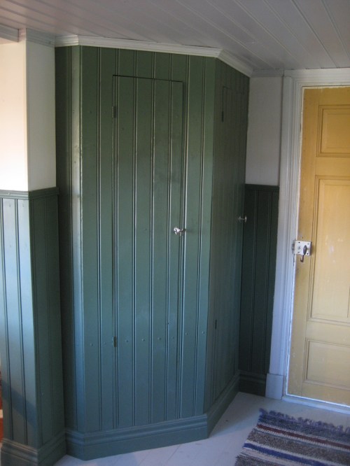 När det kommer till dörrfoder är dessa original med de dörrar vi satte in som kom från ett annat hus. De är ett exempel på den digra tjockleken hos äldre snickeridetaljer. Idag görs lister och foder ofta av mycket tunn kvalité vilket vi idag är vana vid. Dåtidens lister var ofta tjocka, kraftiga tingestar och det är en sådan detaljer som fåråldrar utseendet i ett rum och gör det mer autentiskt. En annan sak som gör att det ser mer autentiskt är valet av spik. Jag valde att spika alla synliga snickerier med gammal klippspik från sekelskiftet som har en betydligt mer tydlig skalle än modern spik. Samma förfarande finns på andra originaldetaljer på egendomen. Idag spikar man mycket dolt vilket var ovanligare förr. De rejäla spikskallarna ger karaktär åt rummet. Det kostar en slant att köpa gammal spik, ca 1-3 kr st men spikar man sparsamt som förr så blir det inte så farligt. Annars gäller det att leta och dra ut spik, vilket jag också har gjort.