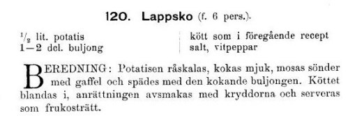 Lappkojs är en rätt från Tyskland (där de älskar djur i nermald form…) som blev populär i hela norra Europa liksom Storbrittanien (där de älskar allt kött på burk…). Särskilt populär ska den vara bland sjömän och den har inget att göra med ursprungsbefolkningen samer.