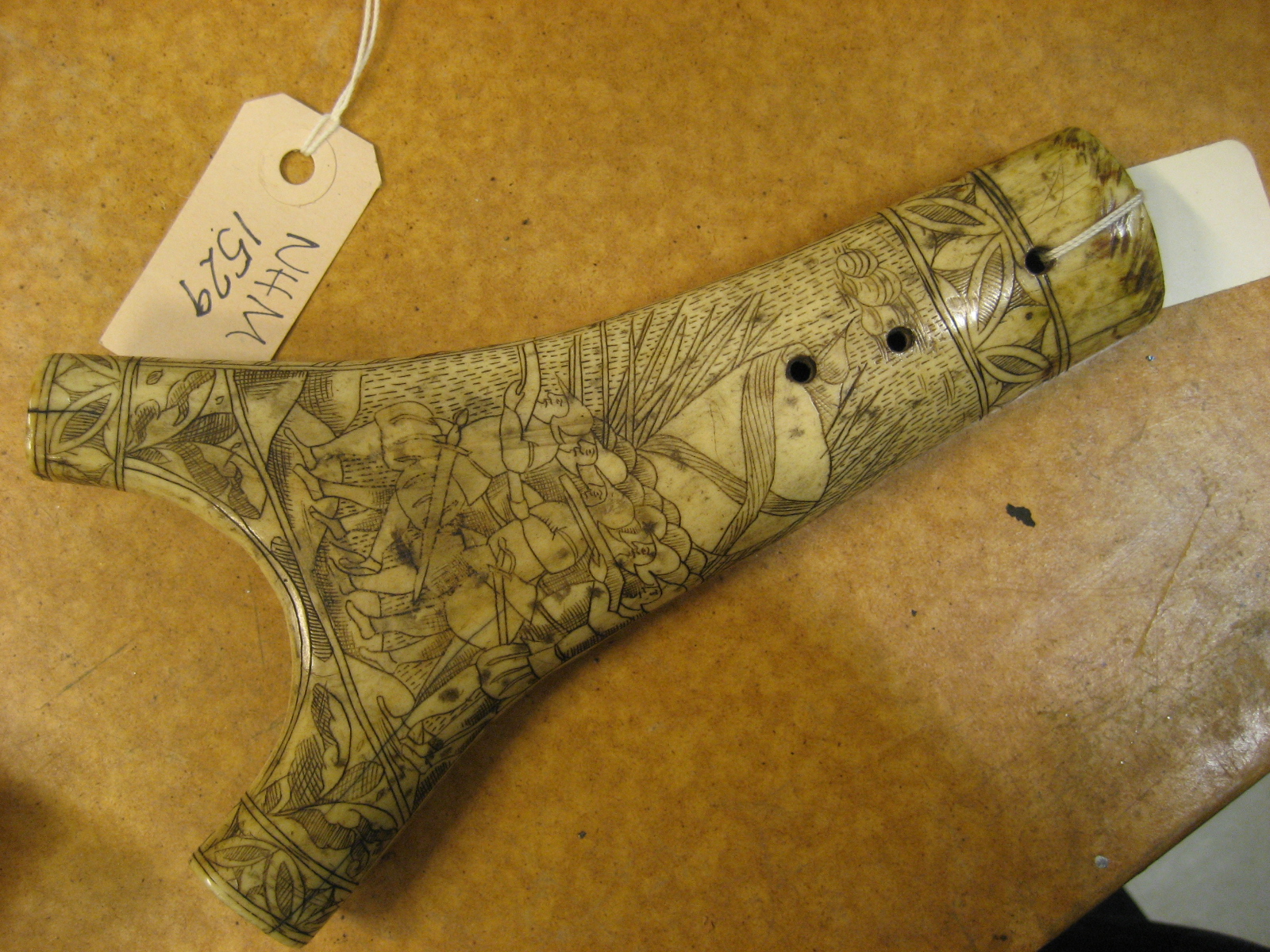 Kruthorn från perioden 1600-1750. Samtliga är ganska ovanliga på det viset att de inte är traditionella kruthorn utan lite mer annorlunda.