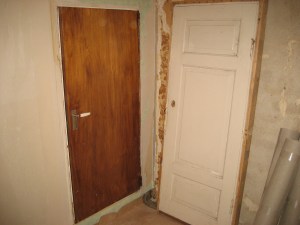 Jag bytte även ut funkisgarderobsdörren mot en annan dörr av samma mått. Efter lite pyssel satt även den på plats.