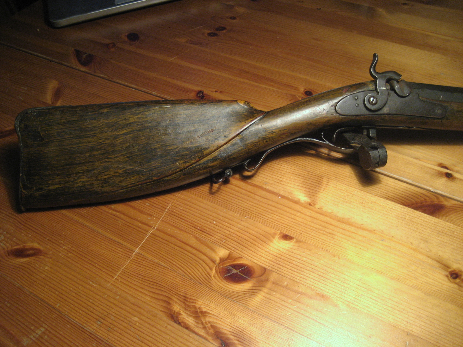Lustigt nog är min bössa också av samma kaliber som jägarbössan ovan. Tål att undersöka om det är en utrangerad militärpipa som satts i civil bössa. Kan inte se om pipan är åttakantig hela vägen eller om bara kammarstycket är det. Min pipa är dock två cm längre men å andra sidan så min pipa byggts om de sista två cm. Någon som har en bild på denna bössa eller på andra rakräfflade tingestar? Det såldes en svensk på Walter borgs auktioner för några år sen