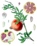 Från vänster lök, koschenill, björklöv och granatäppelskal.
