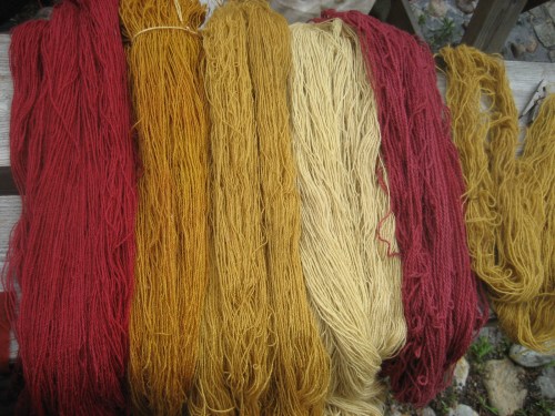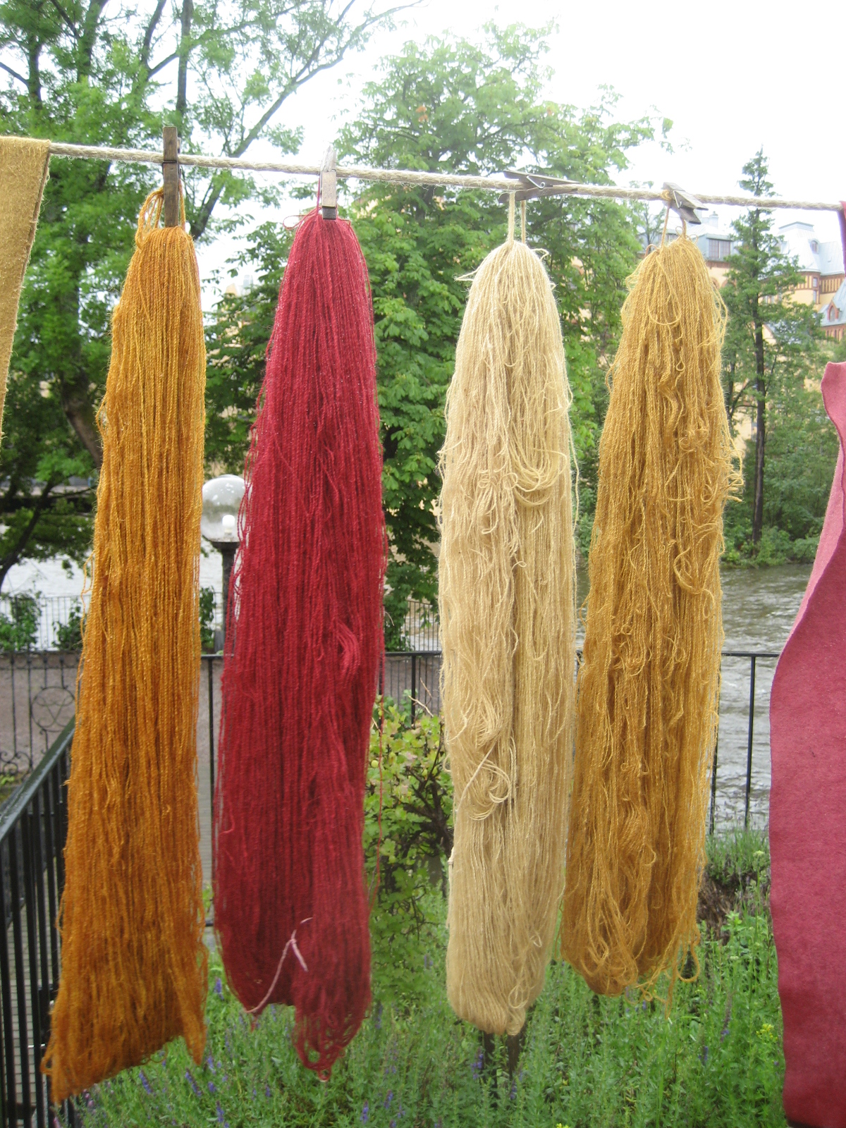 Vi färgade också garn som också blev bra. Vi lät samtliga textilier ligga i badet på 80-90 grader i en timme.