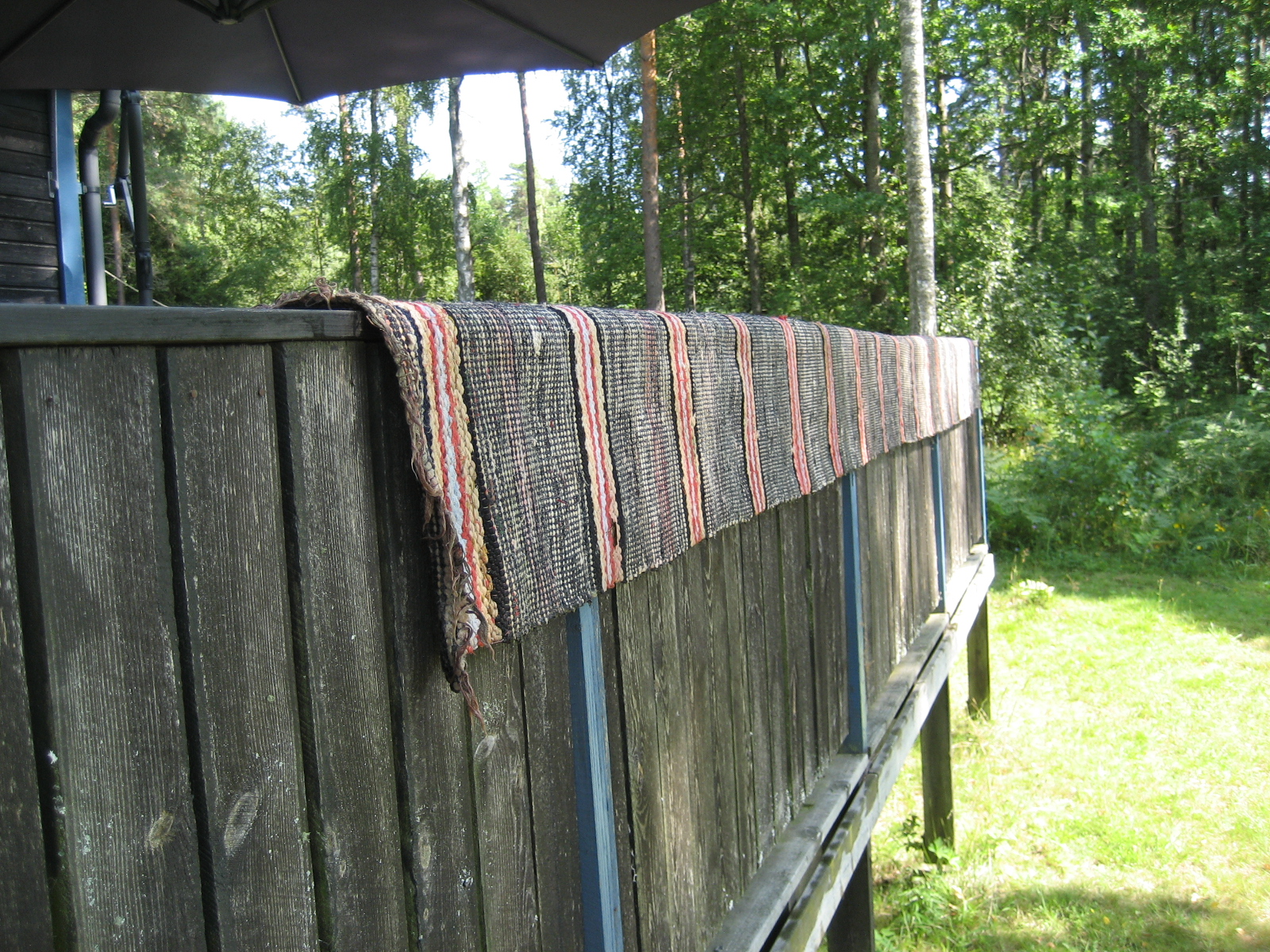 Detta inlägg ger inte så mycket information då Anna-Maria förra året förklarade mycket utförligt i en gästartikel ur trasmattan ska tas. Den artikel hittar du här. Sen vi skurade mattor förra året har vårt förråd av trasmattor fördubblats, det beror på att vi fick fantastiska trasmattor från Farmor och för att vi tog en massa trasmattor från en gård som jag tidigare skrivit om. De sistnämnda mattorna varierade i skick och utförande, från trasiga skabbmattor till yppersta ripsmattor och långa välplanerade trasmattor såsom denna 6-metersmonster nedan: