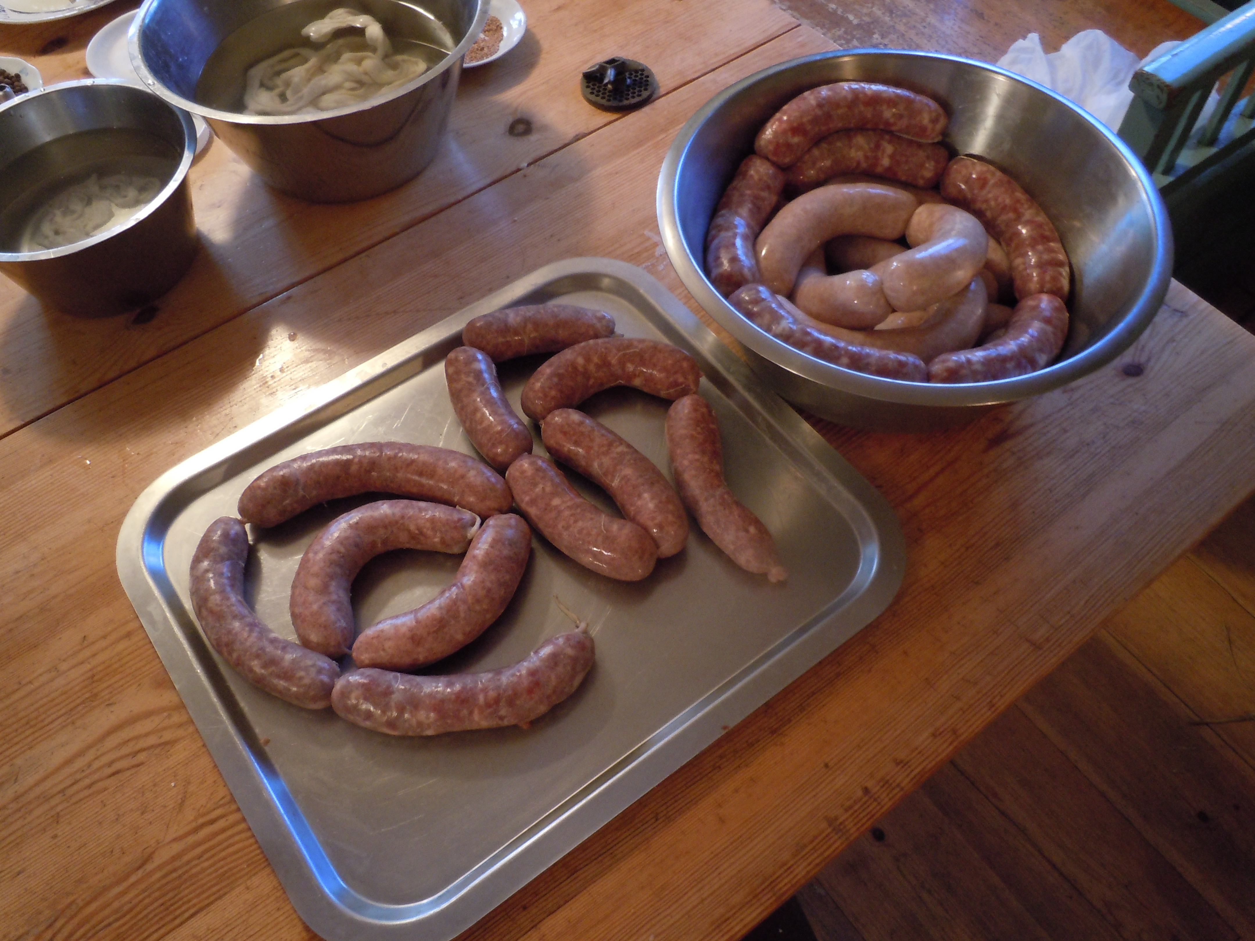 Inga konstigheter här inte, vi använde svinfjälster då vi hoppades på en köttig stekkorv. Fläsket och löken hackades och en ny sats korv var snart skapad. Efter att den var klar var dagen till ända på Grå huset och vi kunde sätta oss ner och beundra vår samlade ansträngning.