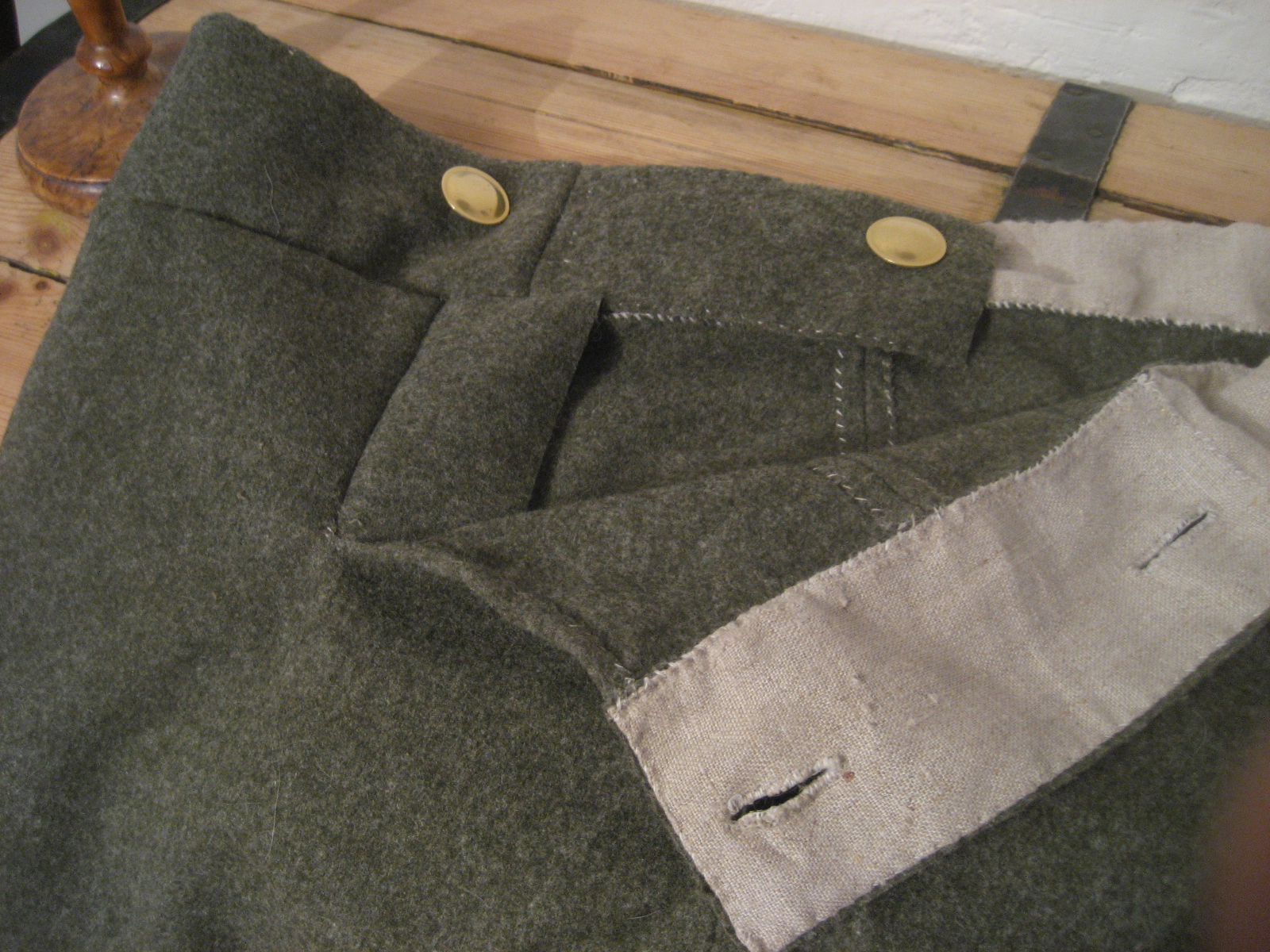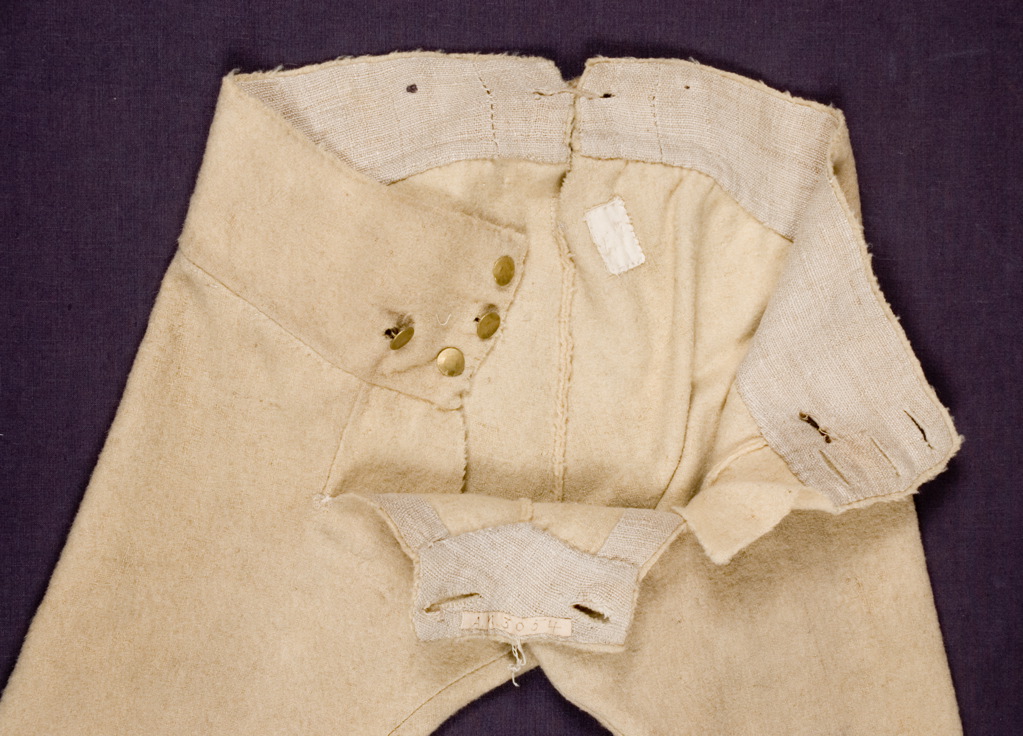 Armens byxor m/1756. Notera råkanten, det är även råkant på bensluten. Bild: Armémuseet.
