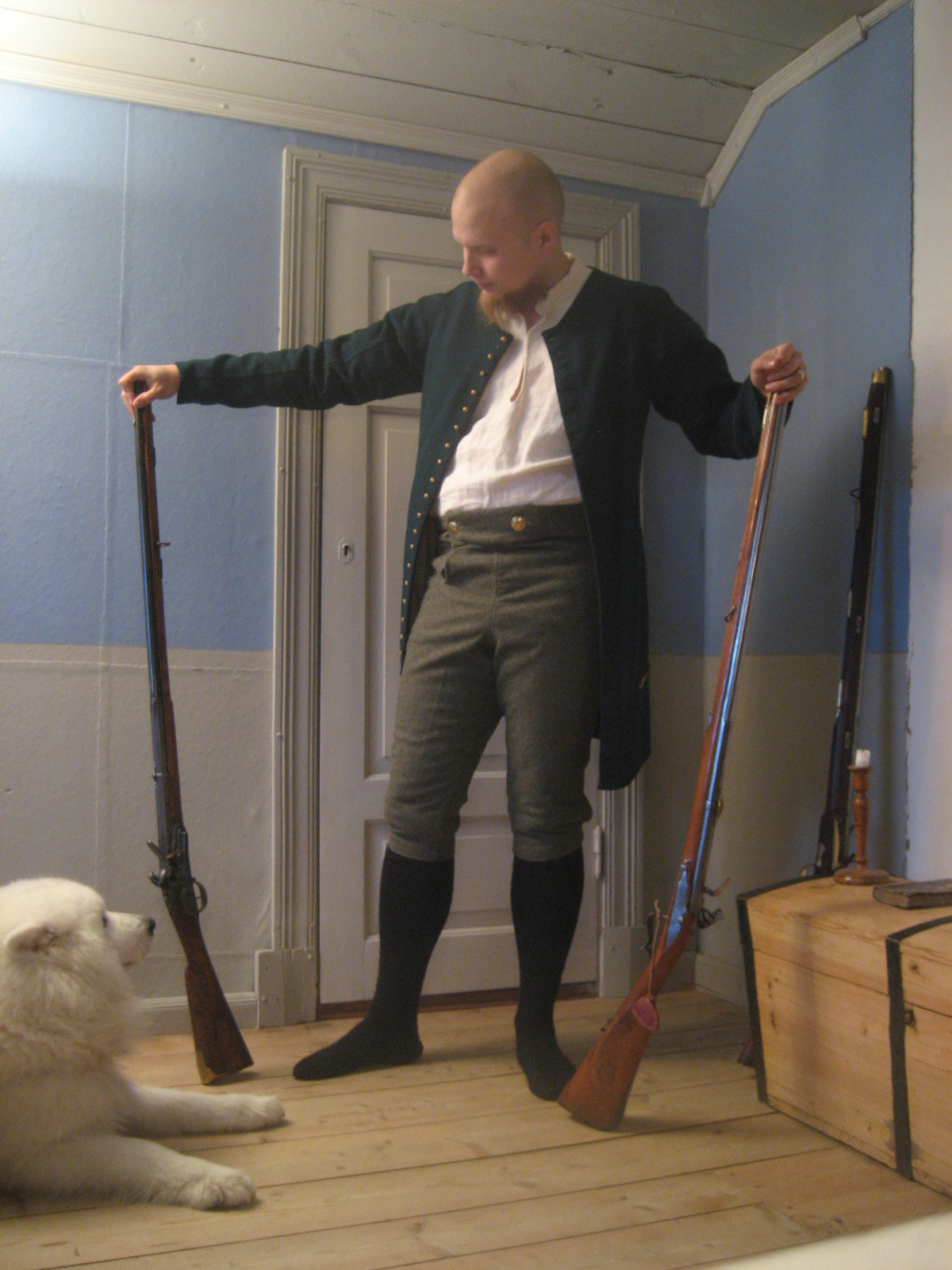Hujedan mig så snyggt! Jag gillar arméns gråmelerade vadmal, även om den är riktigt meckig att sätta nålen i (iaf om man ska sy för hand). Är själv i färd med att sy ett par folkliga* knäbyxor av tidig 1800-talsmodell efter förebild från Halland och Småland, får se vad det blir av det.