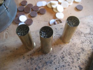 En annan enkel metod som jag stött på flera gånger och som är väldigt praktisk är att använda samma volymmått på hagel som krut. Denna metod har jag  testat flera gånger men den är kanske inte rekorderlig om man vill ha optimerad laddning för just din bössa.