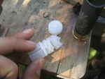 Steg 5. Nu är det bara att lägga på en toppskiva och sen försegla patronen. Det går att använda många olika förseglare, en del använde silikonspruta vilket känns onödigt anakronistiskt.  Jag har läst om benlim, lack, smält bivax och utspätt trälim. Det sistnämnda blev det i mitt fall. Billigt och ganska historiskt motiverat.