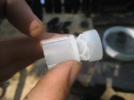 Steg 2. När hylsan fått en ny tändhatt är det bara att skära bort stukningen.