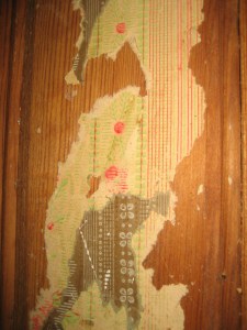 Redan nu var det dags att byta fokus från tidigt 1800-tal till senare för att matcha de ändrade förutsättningarna. Detta bekräftades när vi började riva väggarna. Här fann vi flera lager äldre tapetrester från sent 1800-talet.