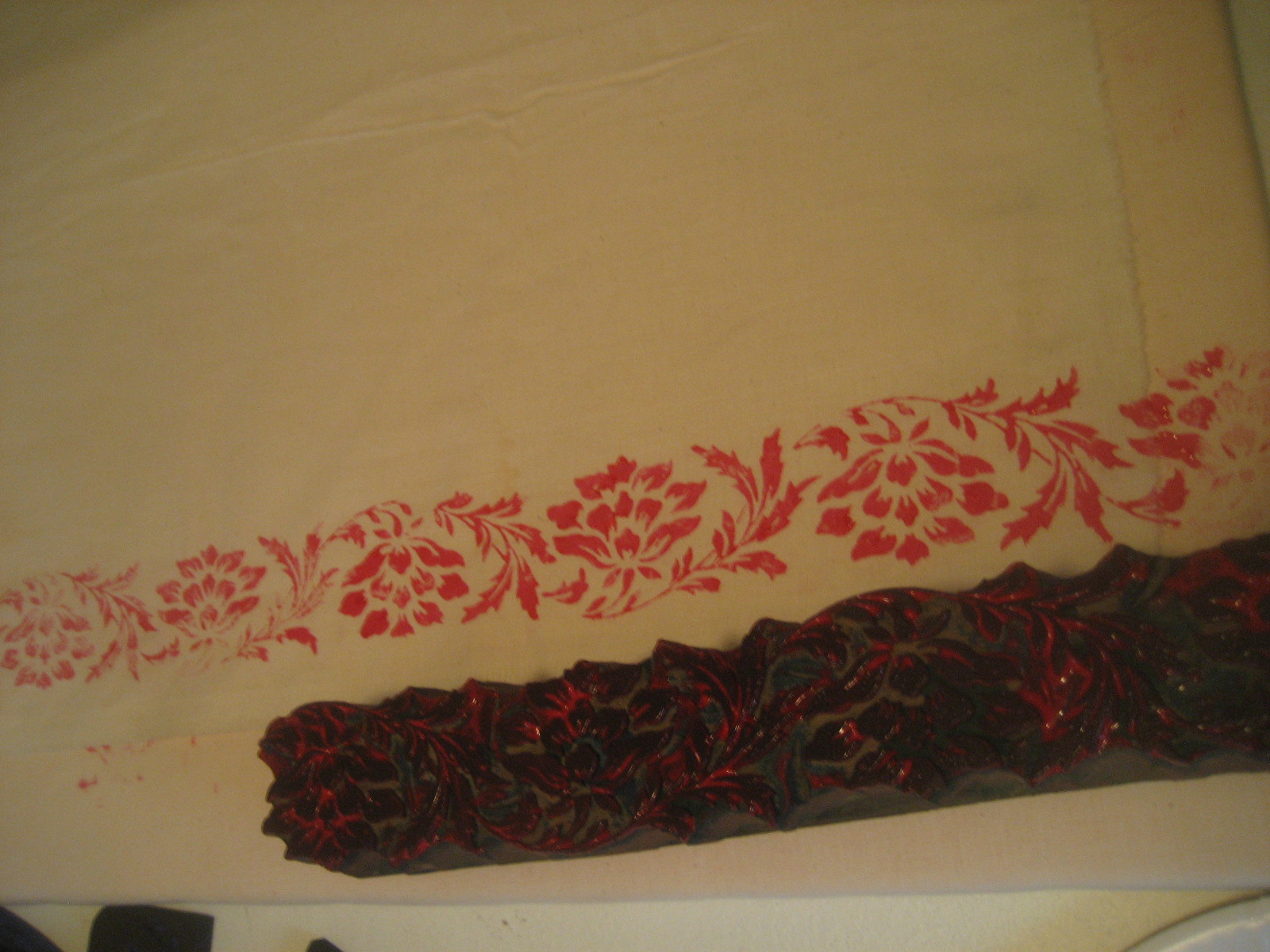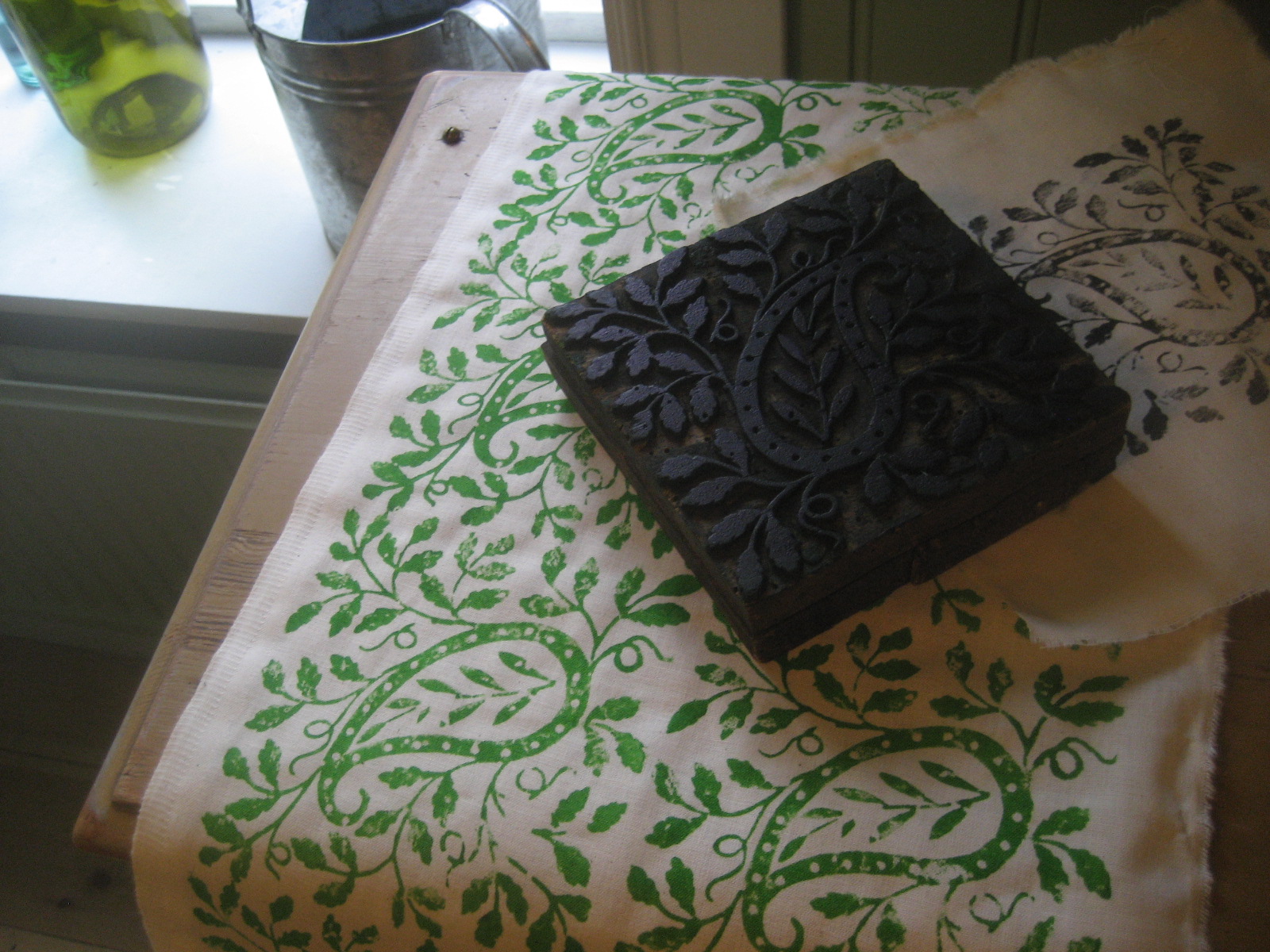 Vi fick också låna två antika tryckstockar som använts till kattuntryck. Svårt att veta hur gamla de är men troligen kring 1800. Kattuntryck är en teknik där man trycker mönster på tyg med hjälp av tryckstockar, särskilt populärt var det under 1700-talet och 1800-talets början. Ordet kattun är en försvenskning av engelskan/franskans cotton/coton. Bomull var det vanligaste underlaget att trycka på och det var en textil fiber som på allvar introducerades i Sverige under denna tid. Från början importerades de tryckta tygerna men snart uppstod en inhemsk produktion.
