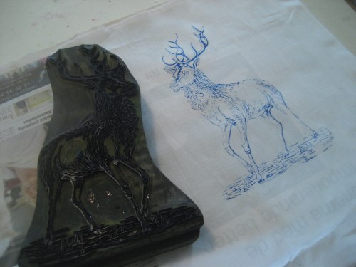 Vi kunde inte låta bli att provtrycka med dem lite, ett provtryck med gåshud. Resultatet blir inte helt perfekt då färgen inte är helt anpassad för stocken som dessutom är något ojämn. I vilket fall är det inte varje dag som man gör något sådant.