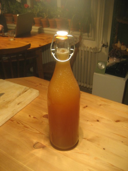 Totalt har vi tagit hand om ca 250 kg äpplen denna höst, från vår trädgård men också andras. Mängder av äpplen ruttnar i villaträdgårdar runt omkring oss. 250 kg låter som mycket men vi tog med oss 200 kg till ett litet musteri utanför Rimforsa och där pressade vi 140 liter must. Klart värt om man har mycket äpplen, det kostar 7 kr litern och man får ta med sig musten från sina egna äpplen hem. Musten är så pass koncentrerad att den dessutom måste späs till hälften när den ska drickas.
