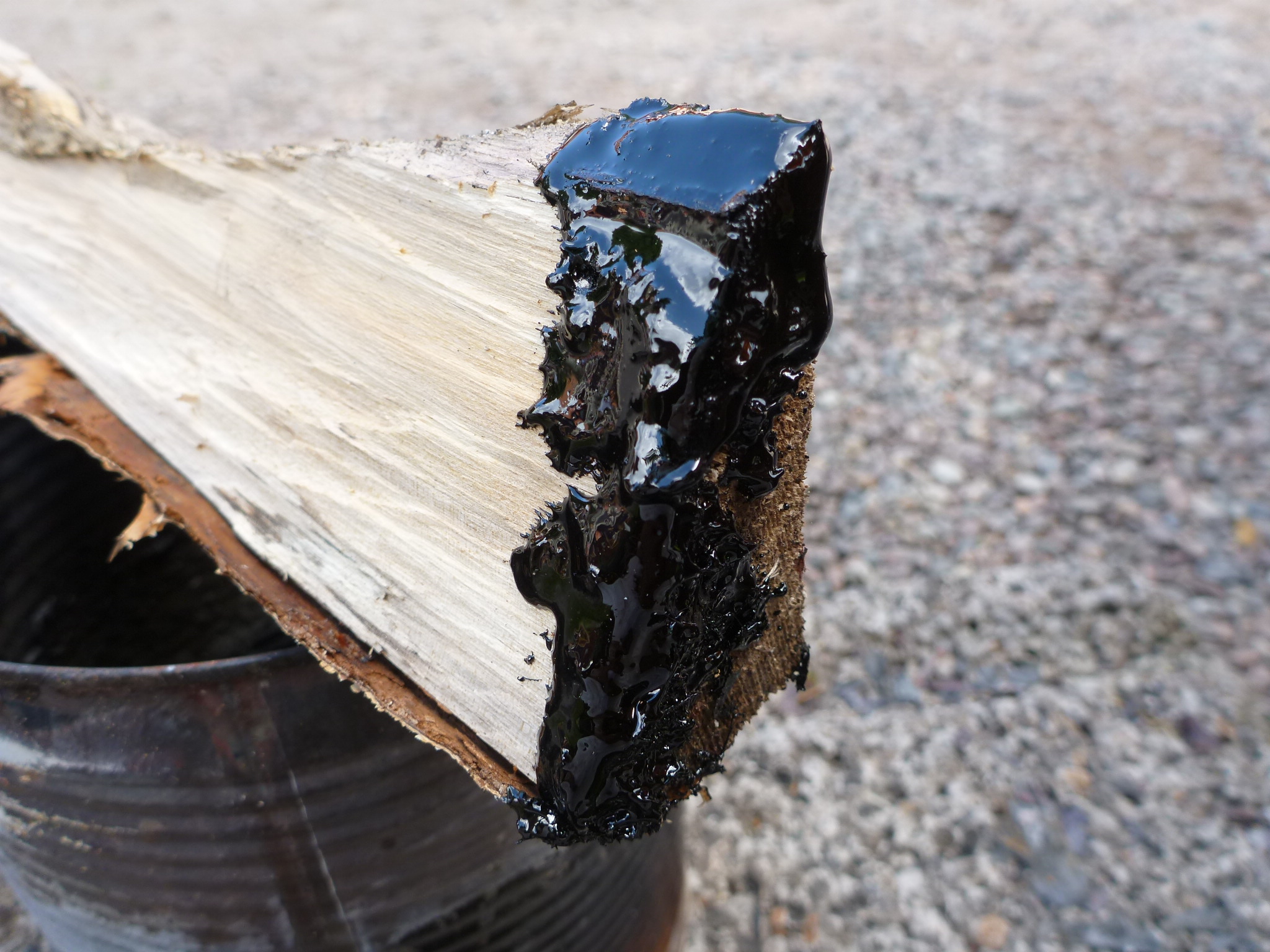 För tredje året i rad besökte jag Persmässemarknaden i Linköping. Detta är en liten marknad i gamla Linköping med historiska inslag. De två föregående åren har jag visat jaktvapen men i år blev det andra saker för att variera lite. Jag blev lite sugen på att dyka ner i 1800-talets hemkemikalier och visa hur man gör trätjärans okända kusin, ryssolja och visa hur den kan användas i lädersmörja. På en Historisk Verkstad för ett antal år sen hade jag ett liknande tema där deltagarna kunde blanda sin egen lädersmörja med traditionella ingredienser.