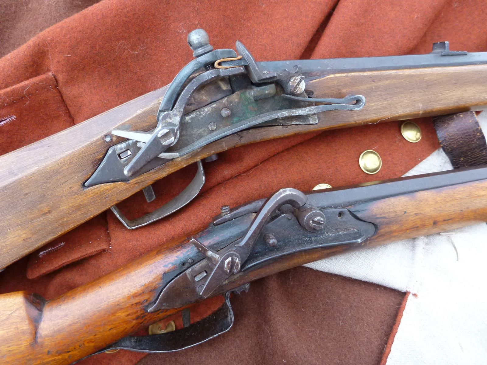 Snappflintlås och konverterat dito. Notera de enkla ändringarna och resterna efter flintlåset.