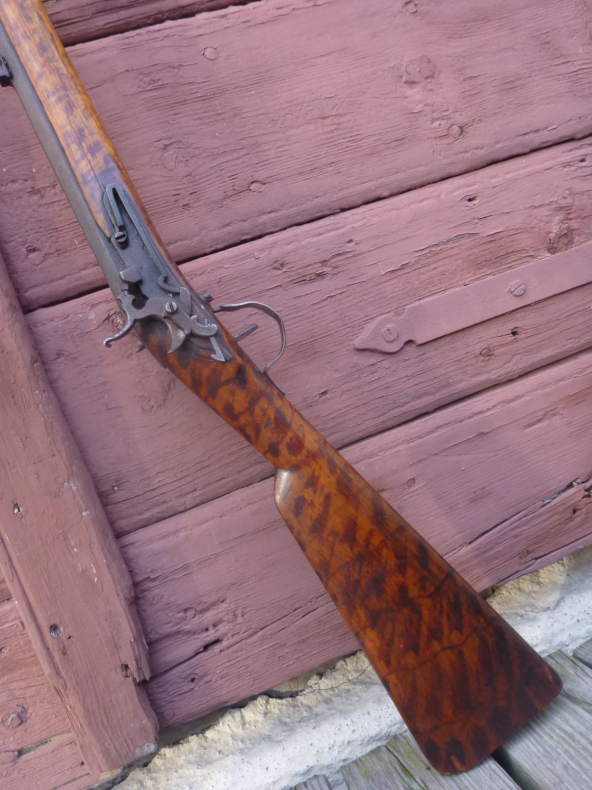 Förra året köpte jag en mycket fin fågelbössa som troligen är från Västerbotten, jag har inte funnit exakt varifrån i nuläget. Jag har tittat i den litteraturen som finns och hittat många liknande lodbössor men ingen som stämmer helt överens med denna. Bössan är liksom de flesta lodbössor inte signerad varför platsbestämning är svårt. Vad jag fastnade för direkt var den enkla men distinkt formade och ådringsmålade stocken. Målningen är i mycket gott skick men påminner inte om något känt träslag utan påminner mer om den allmogemålning vi har för vana att se på hängskåp och golvur. Ibland ser man vacker flammig björk på bösstockar och jag antar att det var åt det hållet målaren syftade åt. Låset är också det mycket distinkt i sin formgivning. Det rör sig ett så kallad tåspännarlås, vilket är en typiskt urnorrländsk låstyp. Namnet får den ifrån den lilla tå som hanen har i bakkant som låser mot upphaket. Bössan verkar vara sparsamt använd och kan tänkas vara från 1800-talet mitt.