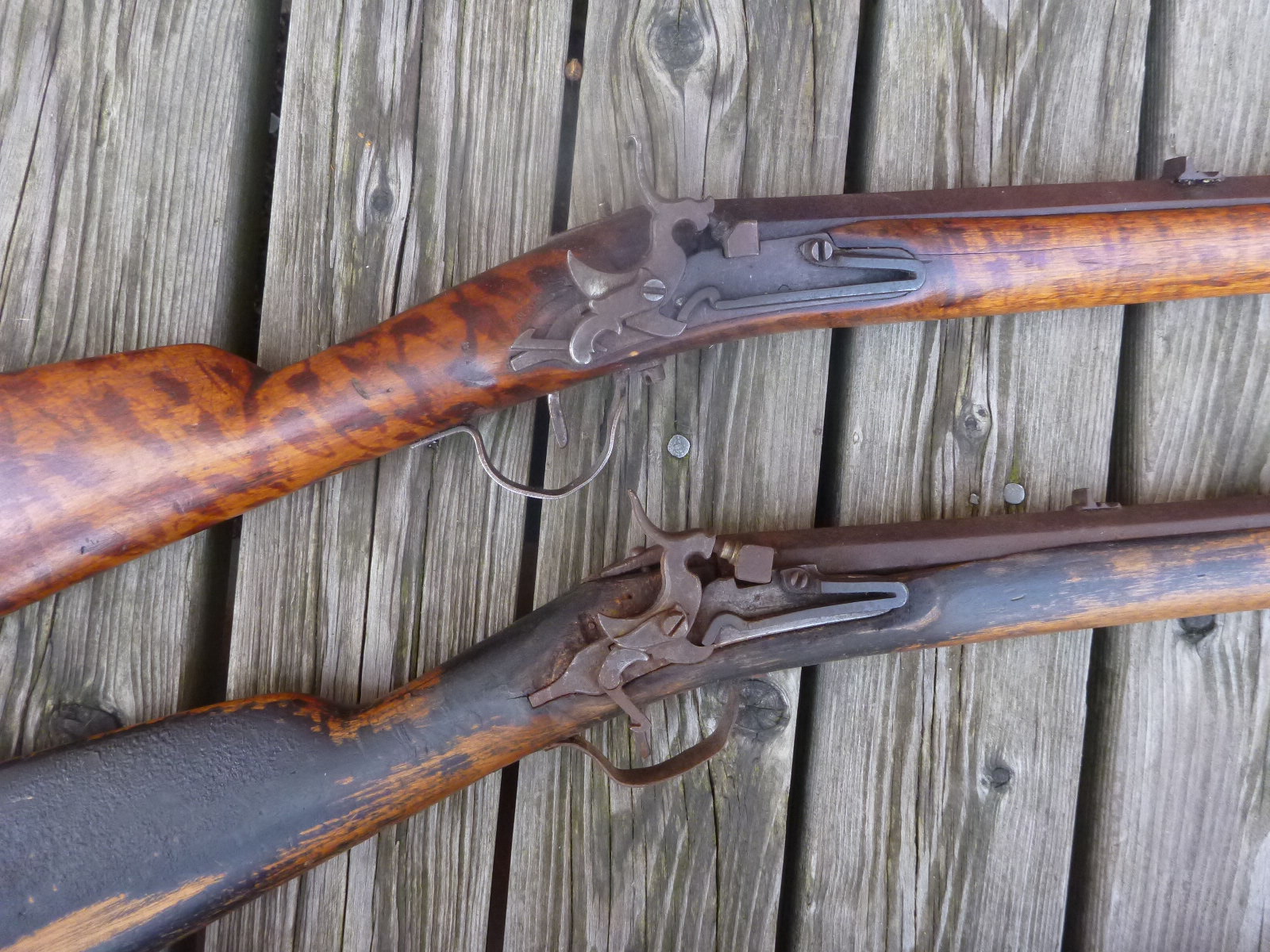 Eftersom de båda saknar signering måste vi i detalj jämföra bössorna för att kunna framlägga ett syskonskap. De första misstankarna fick jag när jag såg låset. Jämför jag dem tycker jag att jag ser många gemensamma och ovanliga drag. För de första har de båda en utdragen råttsvans i låsplattans bakkant, en detalj jag inte sett på någon annan tåspännare. Hanarna är misstänkt lika varandra med sin skarpa form. Metallblecket mellan hane och varhake har också dem en liknande design. Låsen är också av samma storlek och detaljerna har ungefär samma skala.