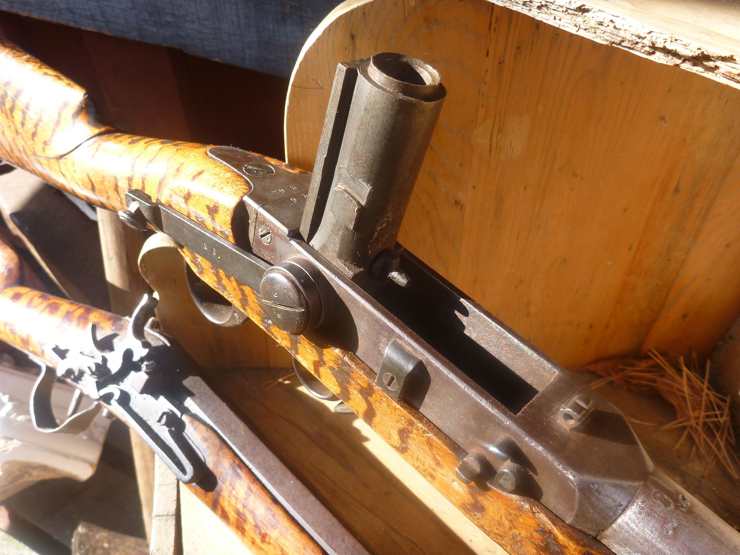 Så här kan man tänka sig att det gick till någonstans i Sverige när någon kom över en svensk, militär m/1851 kammarladdare för flottan som på något vis rangerats ur förråden. Under 1800-talets mitt experimenterades det hejvilt med att få fram ett bakladdat vapen. Genom ett bakladdat vapen skulle soldaterna kunna ladda snabbare och smidigare istället för att ladda från mynningen. Dessutom kunde man nu också ladda ett räfflat vapen enklare med överdimensionerad kula som räfflorna griper tag i för ökad precision. Sverige tog fram m/1851 kammarladdare för flottan. En räfflad historia med en kammare som fälls upp med en spak. Svenska armén valde att avvakta. Norges armé tänkte mer progressivt och valde att byta ut mer eller mindre hela arsenalen mot kammarladdare. Det torde vara en ganska dyr affär men unik för sin tid. Genom iskallt (eller traditionellt armékonservativt) avvaktande antog svenska armén istället patronladdade gevär av Remingtons rullblockskonstruktion under 1860-talet. När de patronladdade vapnen antogs fasades mynningsladdarna ut ur arsenalen och massvis med överskottsvapen kom ut på öppna marknaden. Det som inte skrotades blev ofta jaktvapen, de kapades, stockades om och modifierades efter tilltänkt funktion och rådande mode.