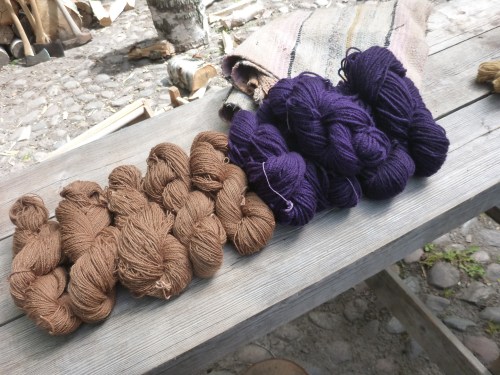 Jag blev överraskad över hur enkelt det var att elda under karen och effektiv konstruktionen är. De vanliga karen är hyfsat stora och rymmer säkert mellan 120-200 liter vatten. Jag började med att beta tio härvor ullgarn måndagen innan invigningen i det minsta karet. Murarna hade renoverat klart veckan innan varför det inte fanns utrymme för några experiment innan. Skarpt läge på självaste invigningsdagen. Varför inte köra två bad dessutom och med växtfärger jag inte haft så mycket erfaranhet av? Varför göra det enkelt för sig när man kan göra det svårt?