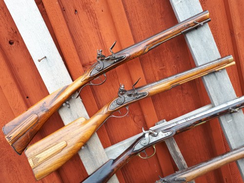 Jag har iallafall nu fem korta bössor varav de tre översta är verkligt genuina slädbössor. Den fjärde är en räfflad lappbössa med tåspännarlås och den femte min hemmabyggda best som går under namnet ”Svartsnärpan”.