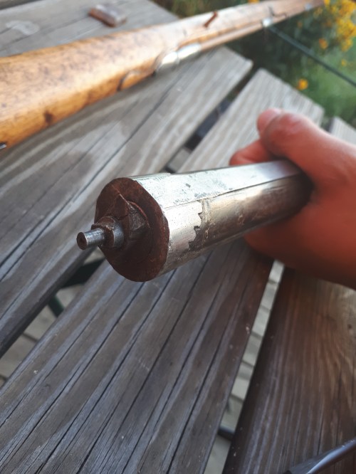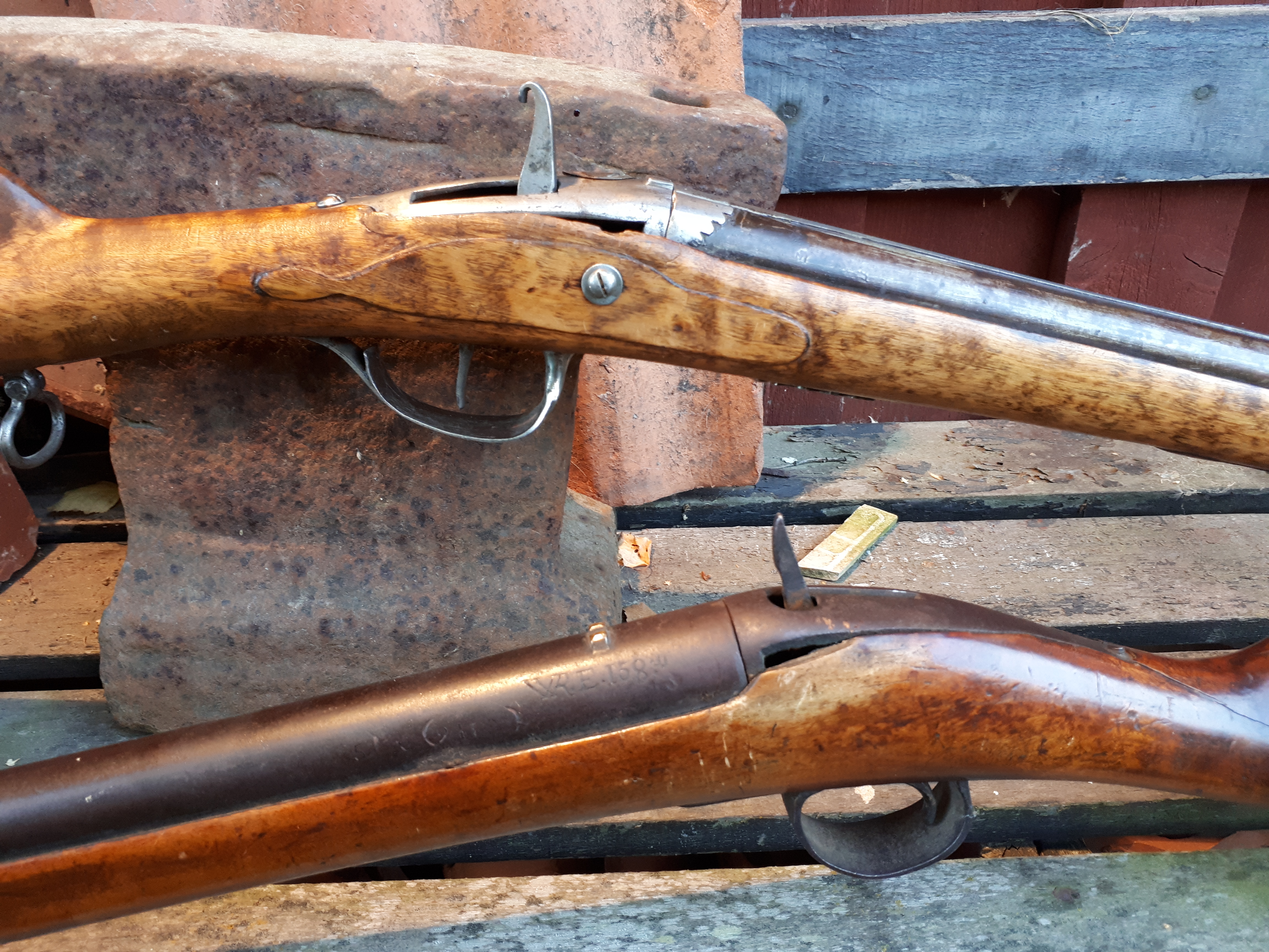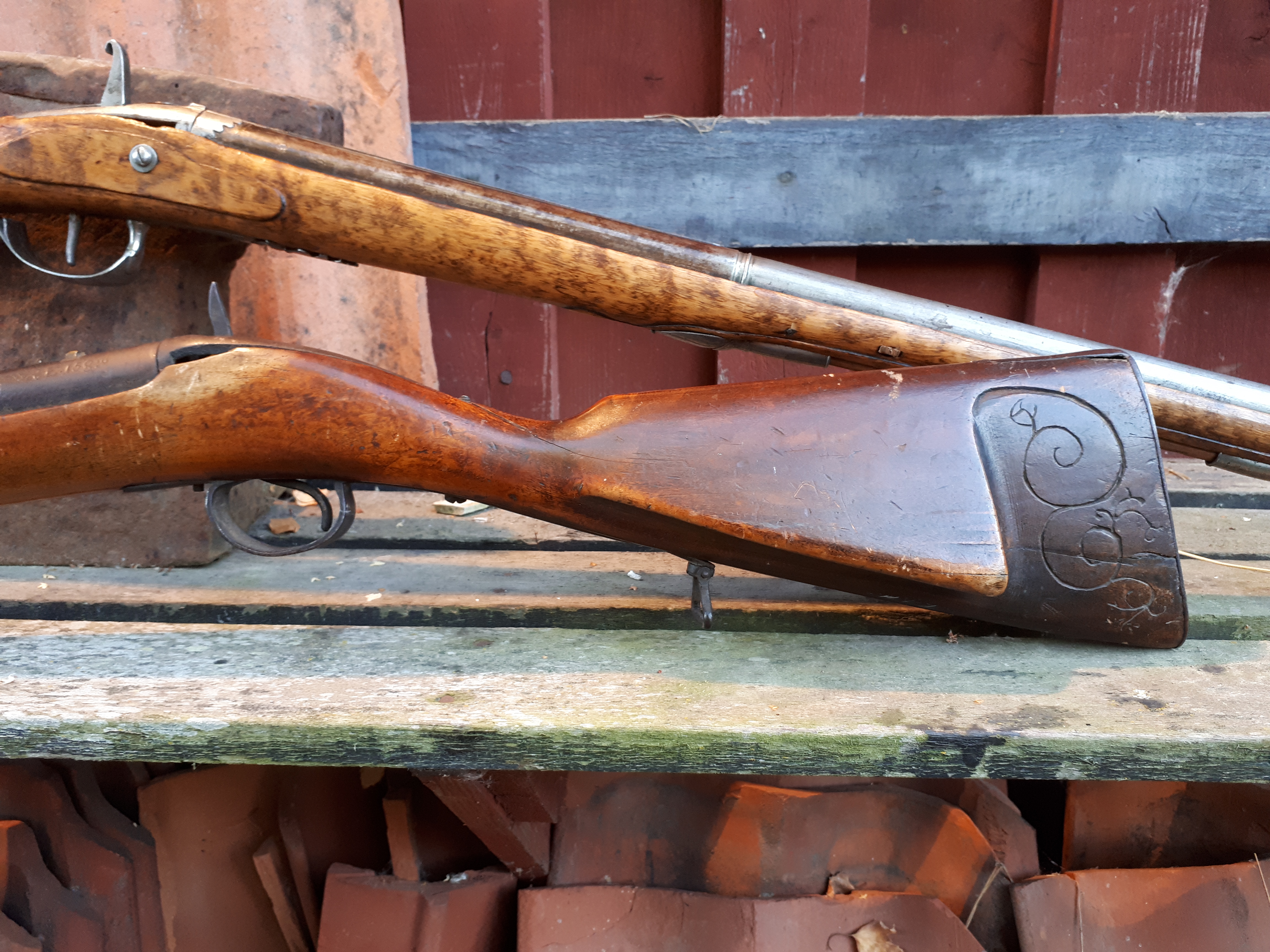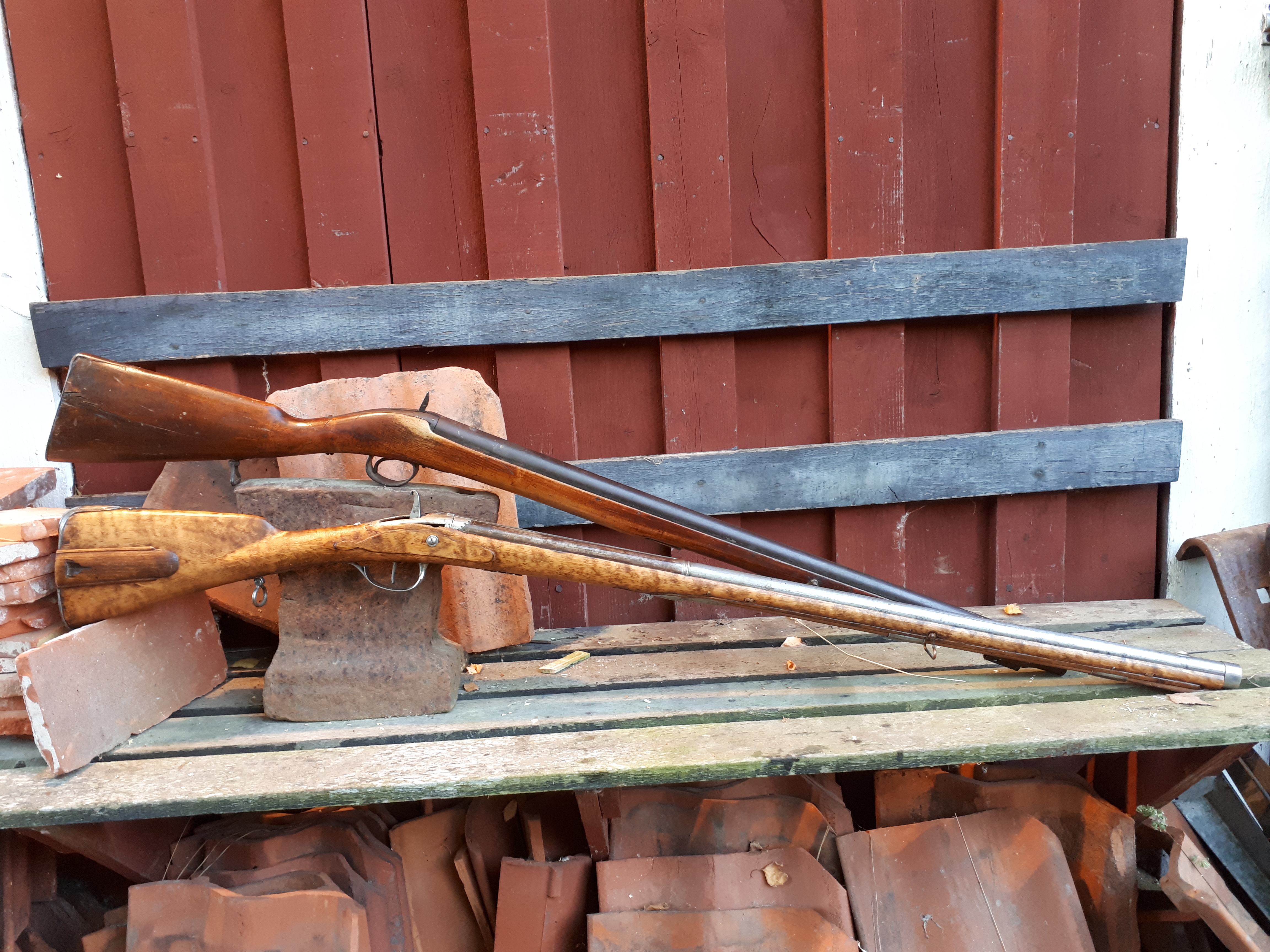 När jag bestämde mig för att forska på detta vapen blev jag mycket fascinerad av vapentypen och drog mig till minnes om ett samtal jag haft med Micke på Mickes svartkrutsvapen. Han kontaktade mig på Militariamässan på Solna och oväntat presenterade han mig för en liknande bössa. Mekanismen var mycket lik men hela bössan var mer folklig till sin karaktär. Jag bestämde mig slutligen att kontakta Micke igen och jag kunde för ett mycket skäligt pris förvärva detta udda syskon med centrumhane.