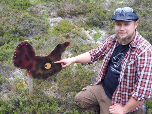 För mig som är en sann vän av flintsnapplåset som troligen är vårt äldsta och mest folkkära lås sen 1550-talet så var detta något av en högtidsstund. Den orimligt korta kolven inbjöd oss till att skjuta liggande med bösspipan vilande mellan knäna, en klassisk skjutställning bland vildmarkens fågeljägare. Bössan, en av Wiberg tillverkad replik av en Runöbössa, vilka jag själv äger ett par stycken. En mycket konvservativ och eftersläpande bösstyp som närmast påminner om flintsnapplåsbössorna som brukades under 1600-talet. Det är ovant att låta vänsterhanden stoppa rekylens framfart men med den förhållandevis snälla kalibern så var det inga problem. Ställningen bäddade för stabilt stöd och gav mig dagens första och enda träff i björnen.