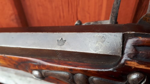 Kolven är välskuren med tidstypiska detaljer och vid varbygeln är initalerna PDS med en krona stämplat. Denna stämpel visade sig vara själva stockmakaren och det finns lustigt nog två stockmakare som heter Peter eller Petter Dalström som båda varit i Norrköping. Emellertid är det bara den ena som var verksam som mästare i Norrköping. Peter Dalström föddes år 1736 och blev mästare år 1759 och var stockmakare på Norrköpings faktori. Detta är den enda stockmakaren som jag stött på från Norrköping vars signatur vi kan fastställa.