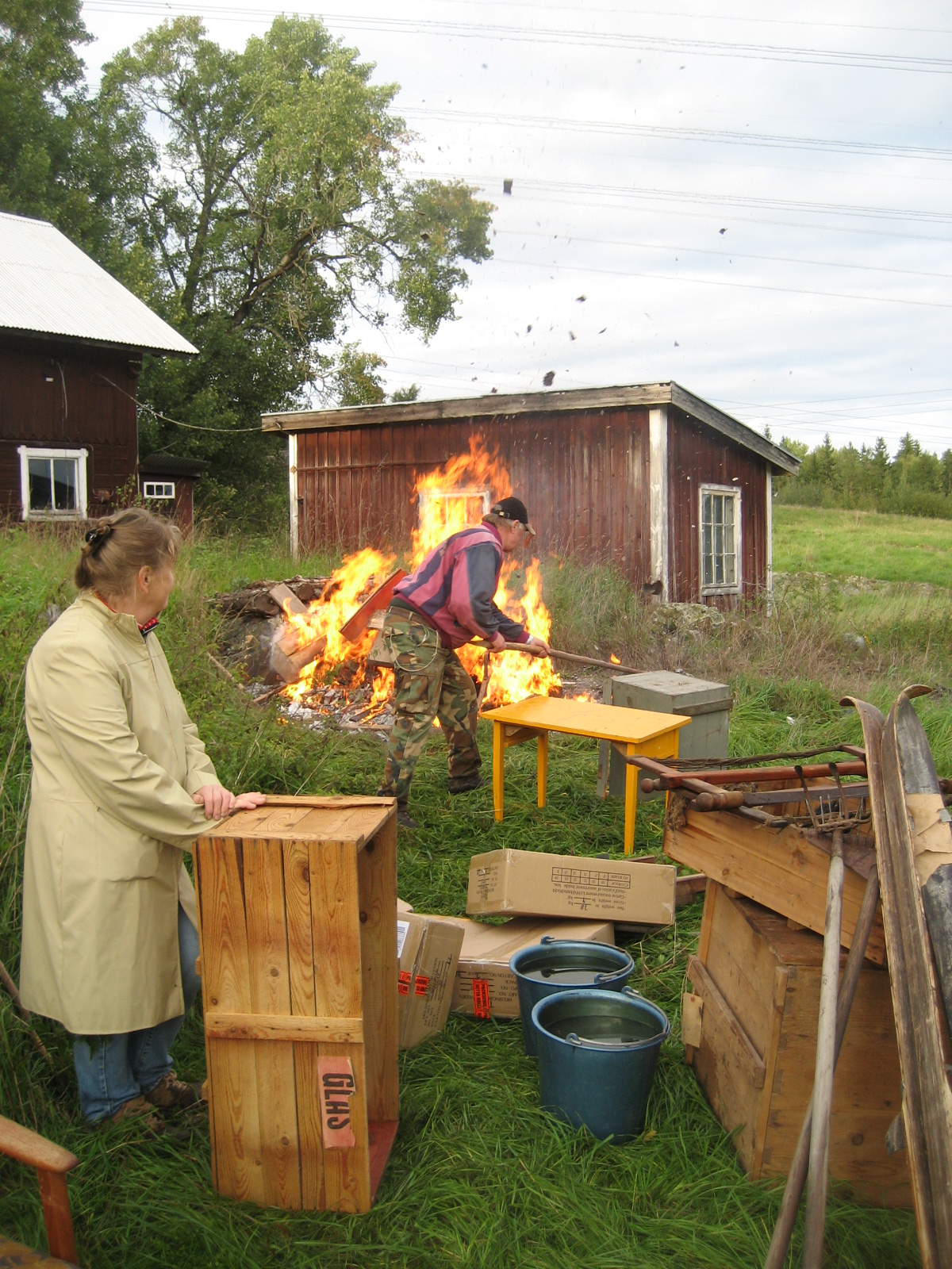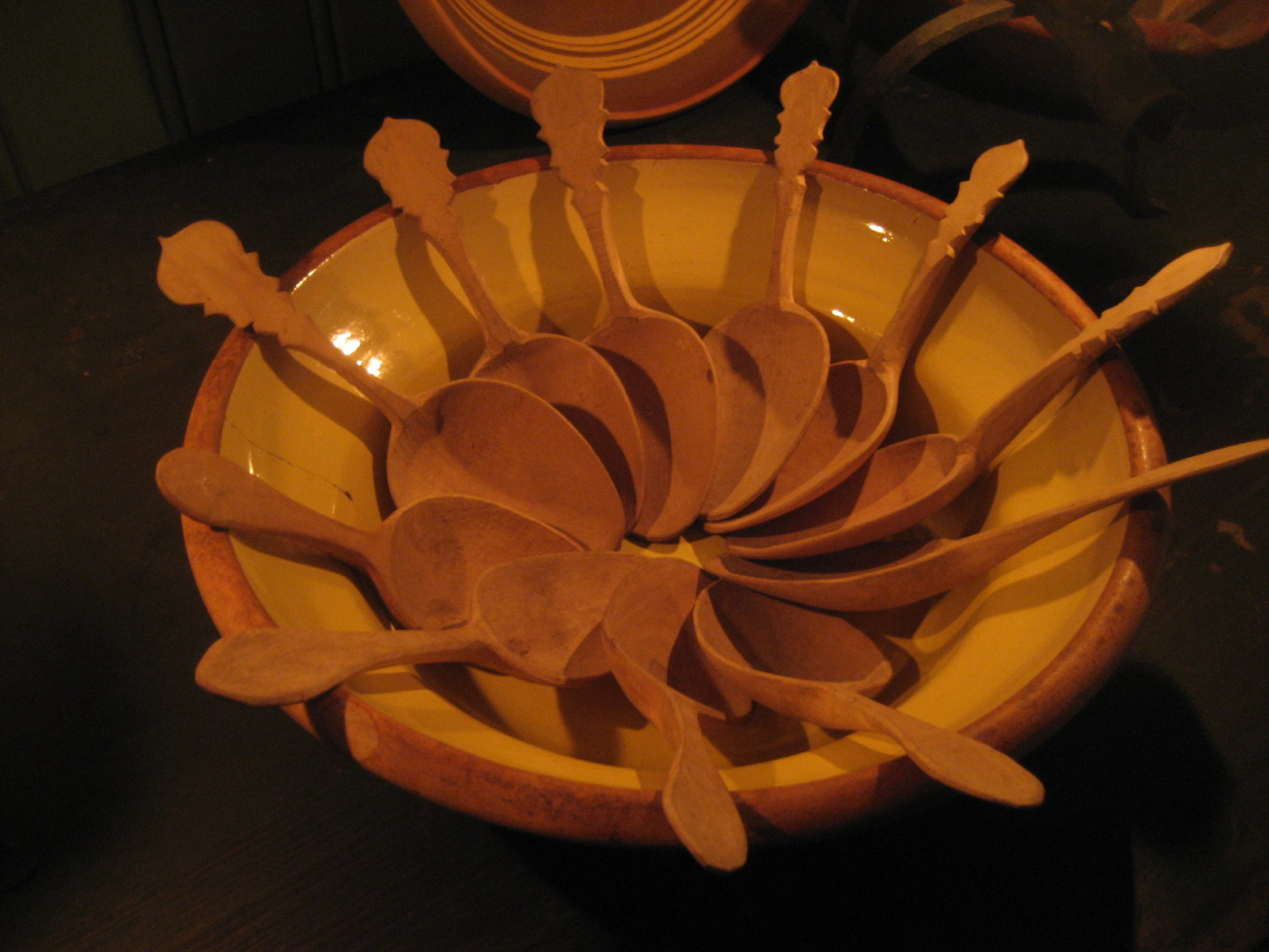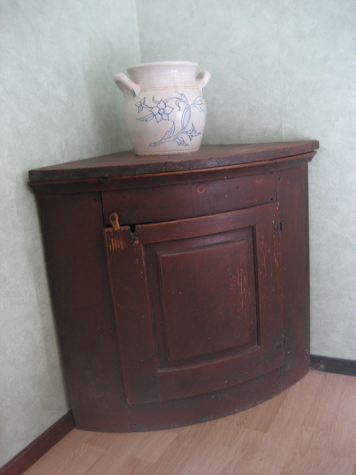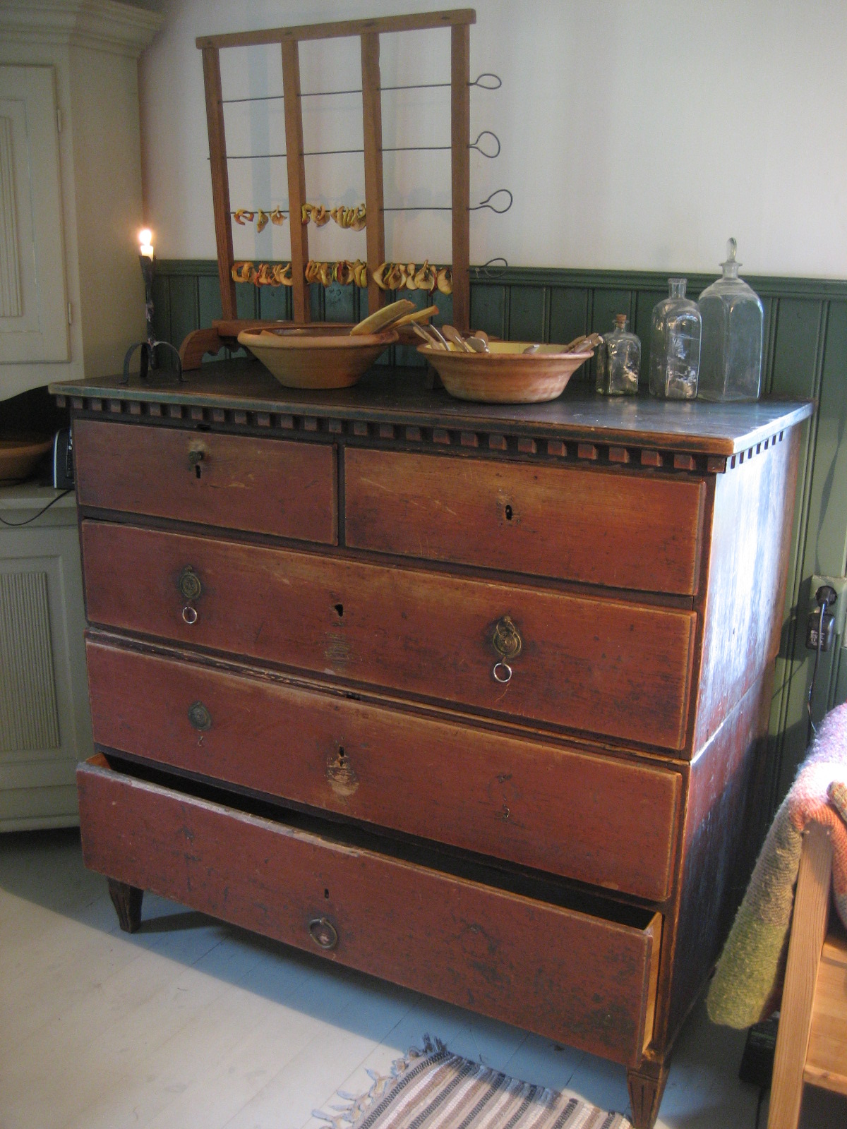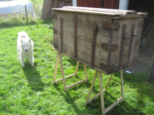 I samband passade jag på att måla en krympburk jag täljde förrförra sommaren tror jag. Det blev riktigt snajdigt tycker jag. Jag måste se till att göra mer krympburkar. Det är målat med linoljefärg som jag blandade till med bara lite engelskröd och linolja i en pasta. Jag strök på det med en trasa och drog bort överflödig färg med en annan trasa. På så vis får man en snabbtorkande lasyrartad yta som är rätt najs.