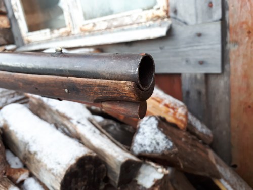 – Gå med bössan över en kullfallen gärdsgård eller träd.