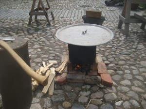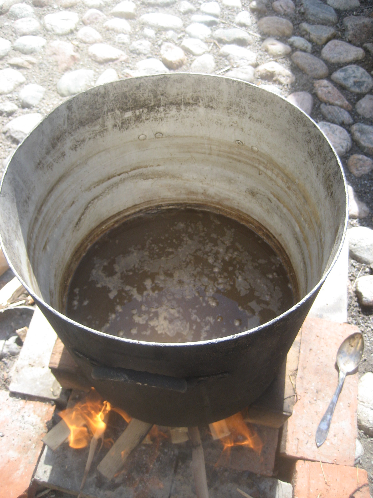 3. Elda, elda, elda. Nu är det bara att koka upp och sen ska vattnet i några timmar med ullen i.