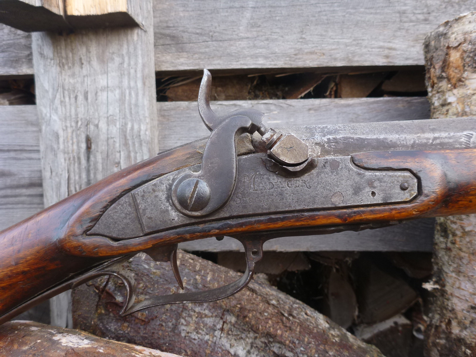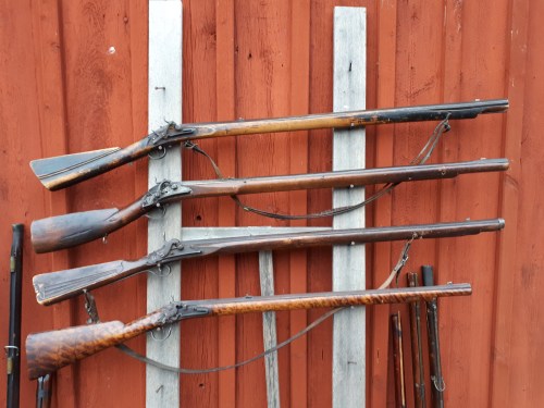Detta är troligen Sveriges vanligaste mynningsladdare, den ombyggda militära musköten. I detta fall rör det sig om en m/1815-49 som kortats i pipa och stock.