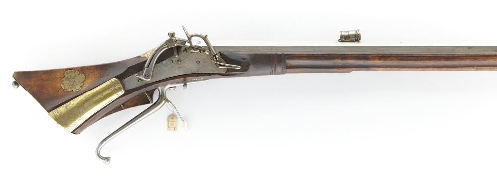 Jag har nyligen fått förmånen att förvärva min första flintsnapplåsbössa från den gyllene eran. Det är en finkalibrig bössa vars lopp är krönt med åtta små räfflor. Detta vapen är ett verk av en profesionell bössmed i någon stad, avsaknaden av märkningar gör att vi inte kan veta något exakt ursprung. Dateringen torde vara kring sekelskiftet 1700 och låset är ett infjäderslås vilket betyder att slagfjädern sitter på insidan av låset. Infjäderslåsen tycks komma under 1600-talets andra hälft, till skillnad från utfjäderslåsen som är mer traditionella med slagfjädern på utsidan.
