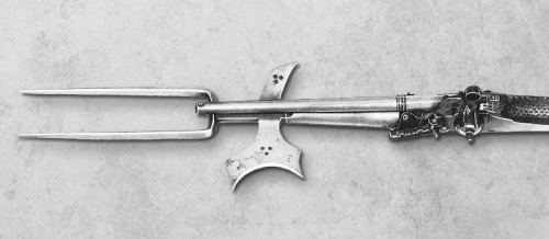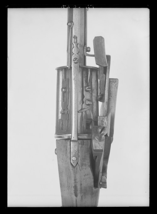 Dessa två vapen är samtida, kring 1700-talets senare hälft. Båda är svenska och har samma funktioner men visar med allt tydlighet skillnaden mellan folkligt vapenhantverk och skolat skråmässigt vapenhantverk. De representerar det svenska vapenhantverkets ytterligheter. Den övre en norrländsk sälbössa med flintsnapplås och undertill en hagelbössa av stilren men enkel standard, ett så kallat faktoriarbete. Båda vapnen omärkta och anonyma.